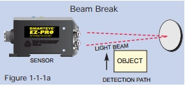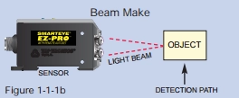 Pour qu'un objet soit détecté, il doit affecter l'intensité du faisceau lumineux atteignant le détecteur de lumière du capteur de l'une des deux façons suivantes :