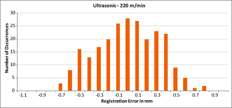 Les capteurs à ultrasons ont l'avantage de détecter la plus large gamme de matériaux. Mais ils sont les moins précis de toutes les technologies de capteurs d'étiquettes. Leur précision est directement liée à la vitesse et à la précision de la bande en continu, bien qu'elle diminue peu à mesure que la vitesse augmente.